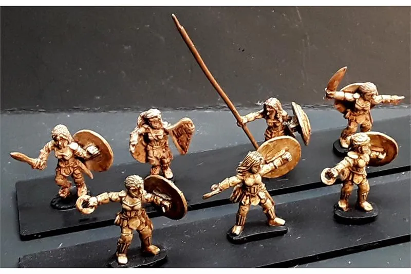 There are 3 variants of the Amazonian with Chakram figures. You will receive a random mix of 32 Amazonians with Chakrams, and a random set of Command Figures consisting of an Officer, Standard Bearer and Musician, plus 35 Shields.