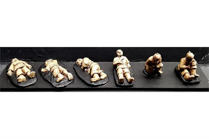 This pack contains 6 Dead & Dying Villager figures.