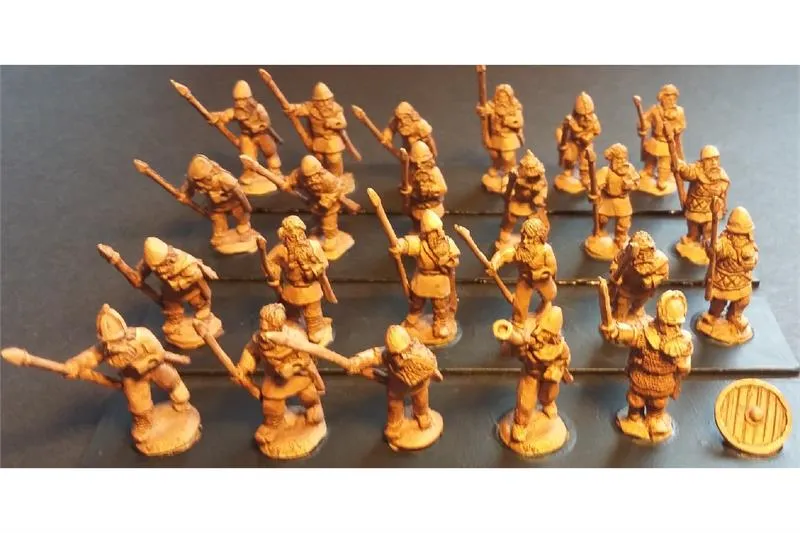 There are 20 variants of the Frigian Spearmen figures. You will receive a random mix of 32 Spearmen, and a random set of Command Figures consisting of an Officer, Standard Bearer and Musician, plus 35 Shields.