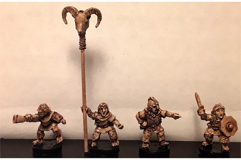 This pack contains 4 Halfling Command Figures. You will receive one of each pose plus any appropriate shields.